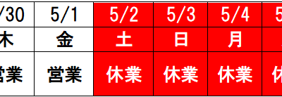 ゴールデンウィーク休業日のお知らせ