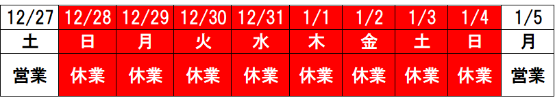 年末年始休業日のお知らせ